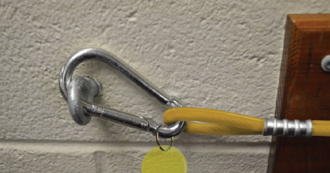 A 3/8” eye bolt anchors the cable securely in the wall, whether cinder block.